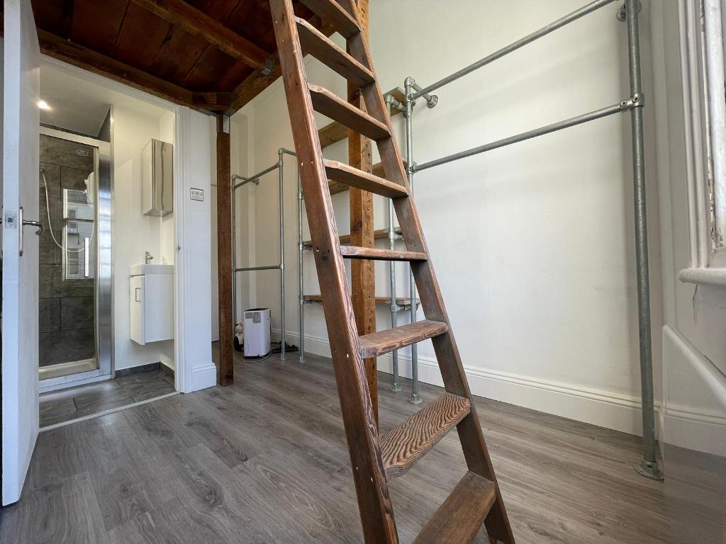Upstairs, the versatile mezzanine level provides a spacious double sleeping area with open wardrobe space. The recently refitted shower room boasts an exposed brick wall, adding to the apartment"s charm.