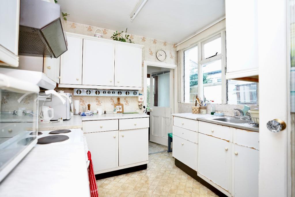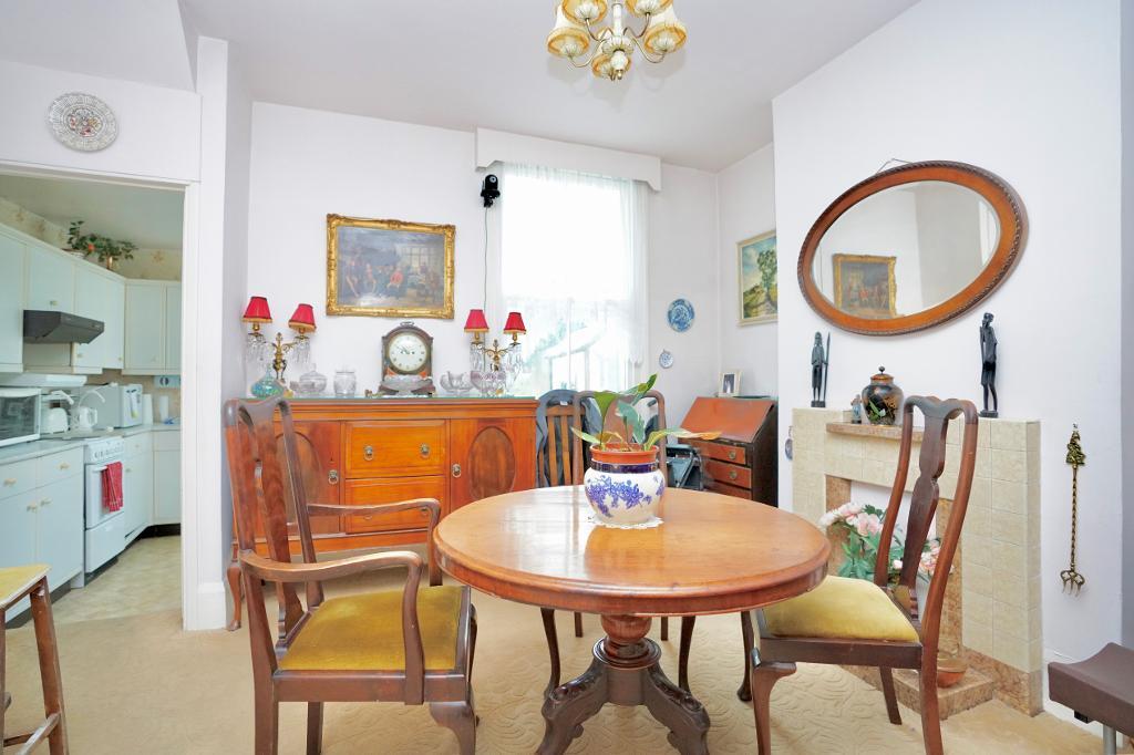 The ground floor has a south facing living room with feature bay window, this room has been knocked through creating a large living / dining area. There is a door leading out of the dining area into the kitchen which is in need of modernisation, to the rear of the kitchen is the utility room which provides a fantastic storage space. The rear garden is accessed via kitchen and is a typical poets corner garden.
