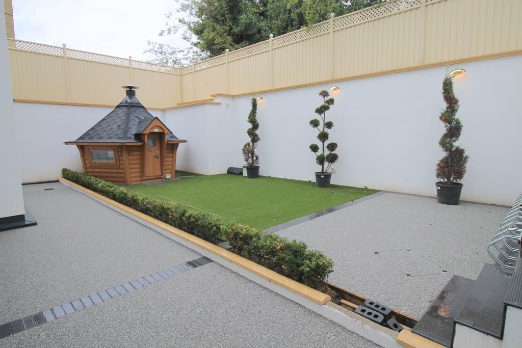 This property boasts luxury throughout, private entrance, two double bedrooms, modern family bathroom with shower over bath and massive amounts of storage, luxury modern fitted kitchen with integrated appliances, open plan living room leading to two private outside spaces and an amazing addition of a cinema room.