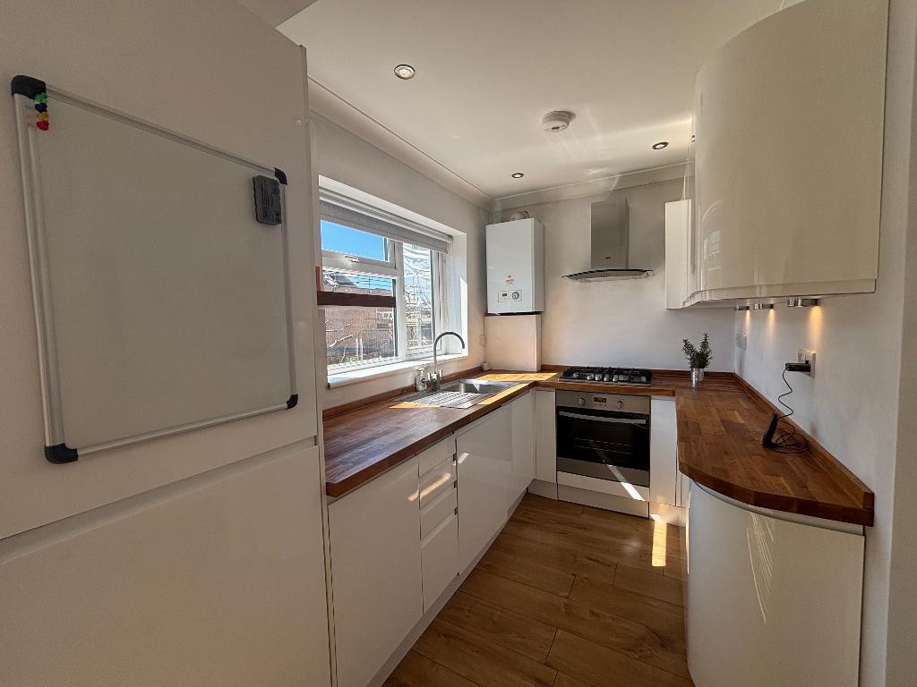 The property features a stylish open-plan kitchen and living area with a modern finish, ideal for comfortable everyday living. The kitchen is fitted with contemporary units and integrated appliances, flowing into a bright and airy lounge space.