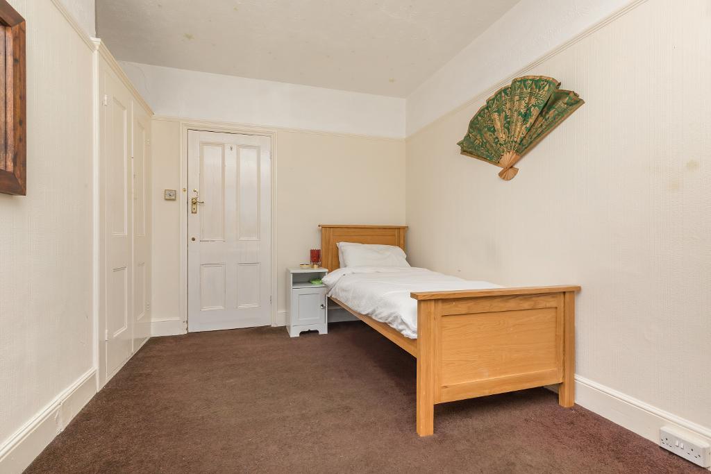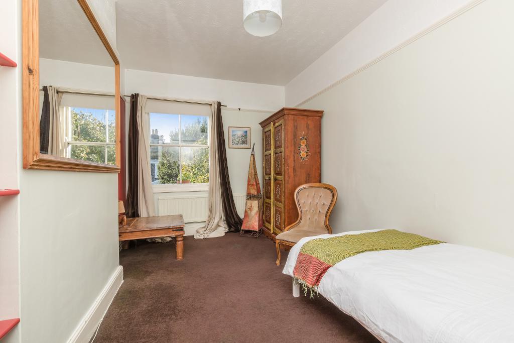 Just opposite the main reception room is the sunny master of the three bedrooms, which has nice west facing views, a handy wash basin and option to reinstate a bathroom with the plumbing still remaining in the wall by the chimney breast.