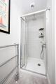 Carry on through to the master bedroom, with luxury grey carpets, bespoke wardrobes, huge floor to ceiling windows allowing for a lot of natural light and a very pretty en suite shower room finished to a high standard. Hudson Reed shower, heated chrome towel rail and wash basin.