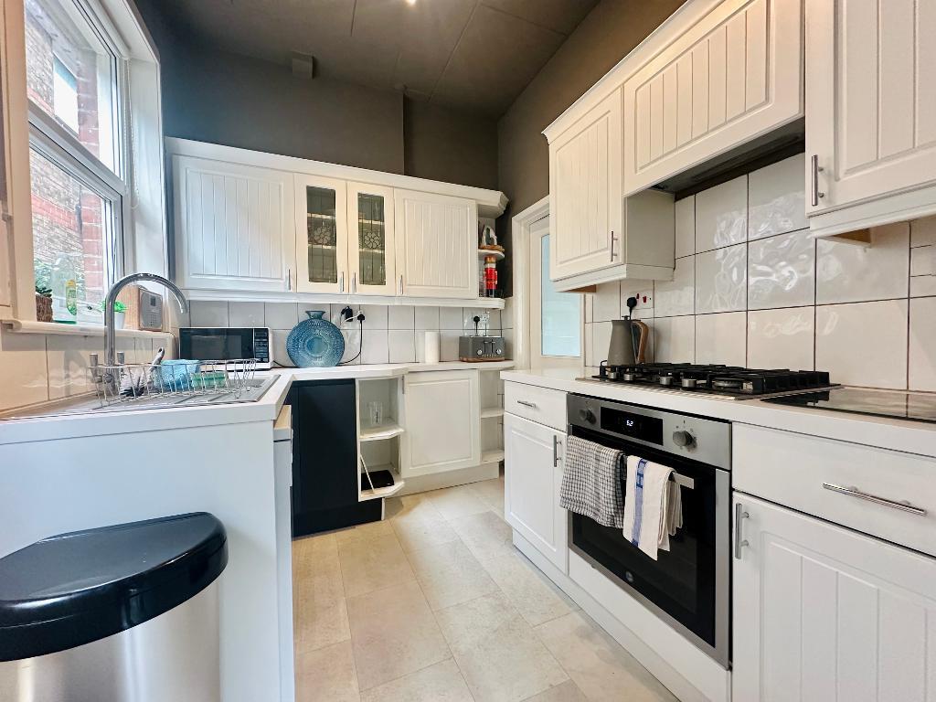 Brimming with character, this inviting property features a spacious lounge/diner that opens through patio doors onto a generous private rear garden, complete with a decked area - perfect for outdoor relaxation and entertaining. The separate kitchen is well-equipped with all necessary appliances, and there's an additional utility area that includes a fridge/freezer and washing machine for your convenience.
