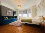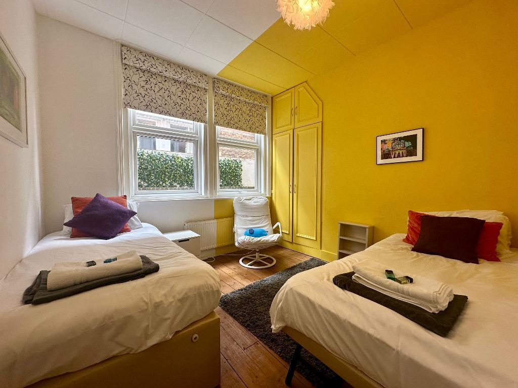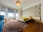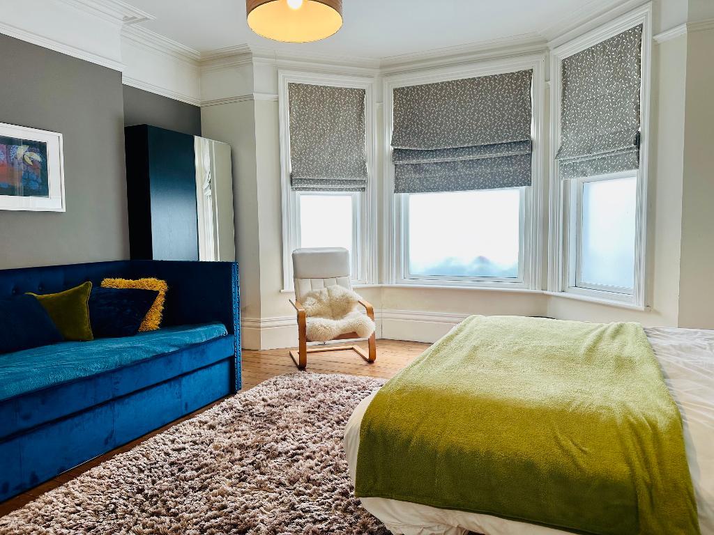 The flat boasts two well-proportioned double bedrooms. The master bedroom is exceptionally spacious, featuring a sofa bed and ample storage, while the second bedroom is furnished with two single beds, making it ideal for various sleeping arrangements.