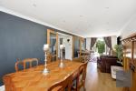 The ground floor features a generous living and dining room filled with natural light, a well-proportioned kitchen and breakfast room, a downstairs WC and access to the garage. The garage is currently arranged as a gym but could be adapted for a variety of uses.